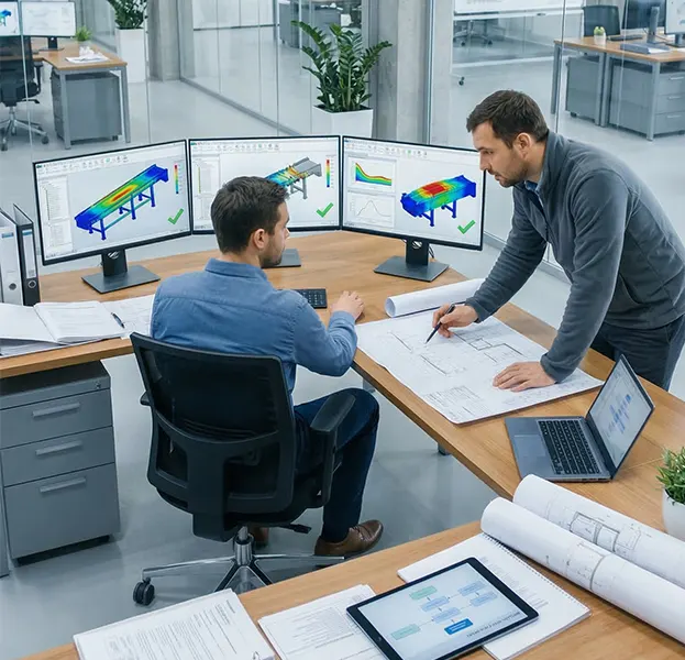 Our core capabilities include engineering design verification for conveyor systems, ensuring structural strength, load capacity, and safe operational performance. We conduct detailed engineering calculations to evaluate conveyor frames, supporting structures, shafts, pulleys, and drive systems under operational and dynamic loading conditions as part of professional Conveyor structural design verification.