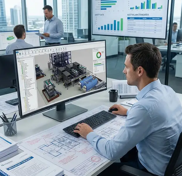 Our engineering team works with both new process plant installations and existing facilities requiring engineering verification to ensure full compliance with Australian safety and regulatory standards before commissioning or operational upgrades.