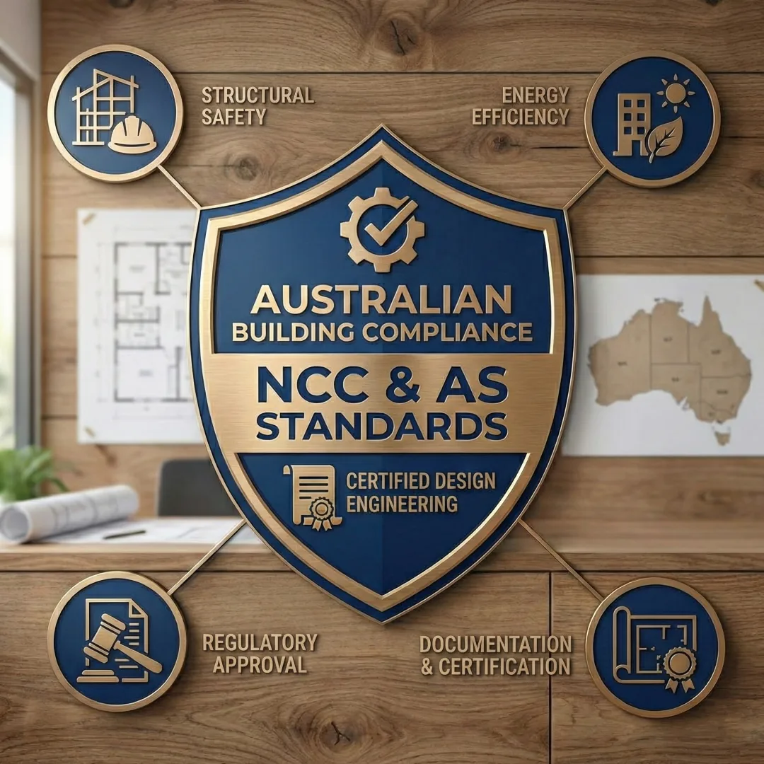 Building Design Certification is the formal engineering confirmation that a structure complies with the National Construction Code (NCC), relevant Australian Standards and state regulations.
