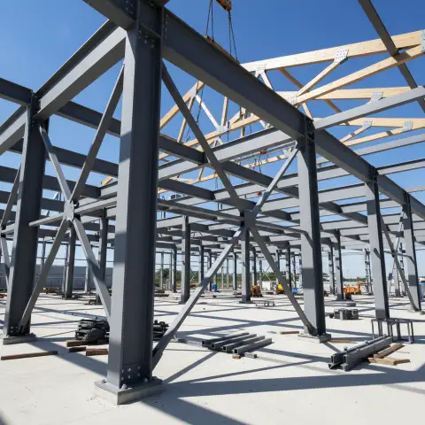 Steel structures require member selection, welding and bolting design, bracing systems and corrosion protection considerations.
